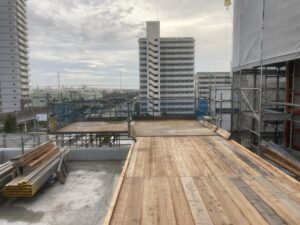 戸建て住宅のような小規模な建物から、物流倉庫などの大規模建築物、高速道路といった公共工事の現場まで、さまざまな建築物の足場施工に対応しています。